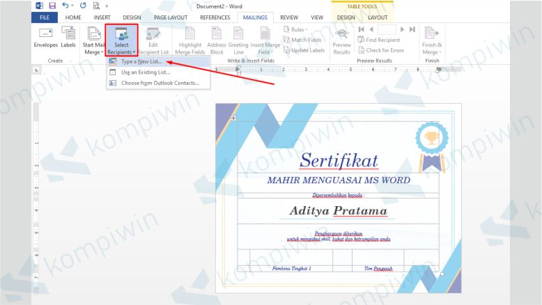 Cara Membuat Sertifikat Di Word Dengan Mail Merge